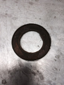 The main grease seal is two part, with this part sitting behind the inner bearing outer, up against the brake backing plate