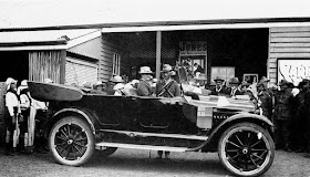 Outside the Barcaldine shop a family poses in a very fine looking 1918 Studebaker.